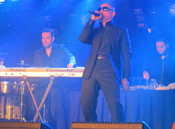 After the models were introduced, Pitbull took the stage to entertain the crowd. Unfortunately for Mr. Bull, the crowd was somewhat distracted by the sight of 10 swimsuit models dancing on a podium facing the stage.