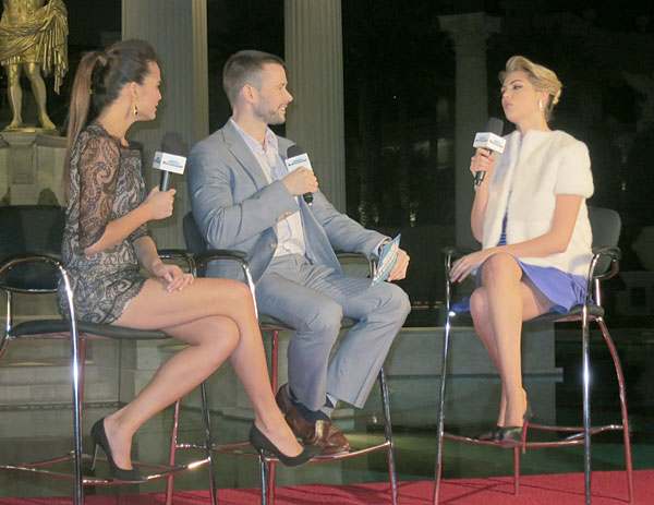 Hosts Chrissy Teigen and Matt Bean (my boss, follow him on Twitter) speak to Kate Upton during SI's live broadcast of the projection mapping video.
