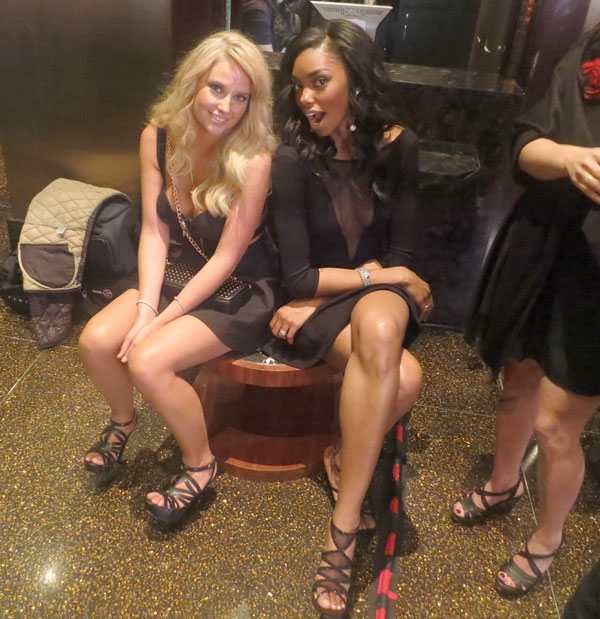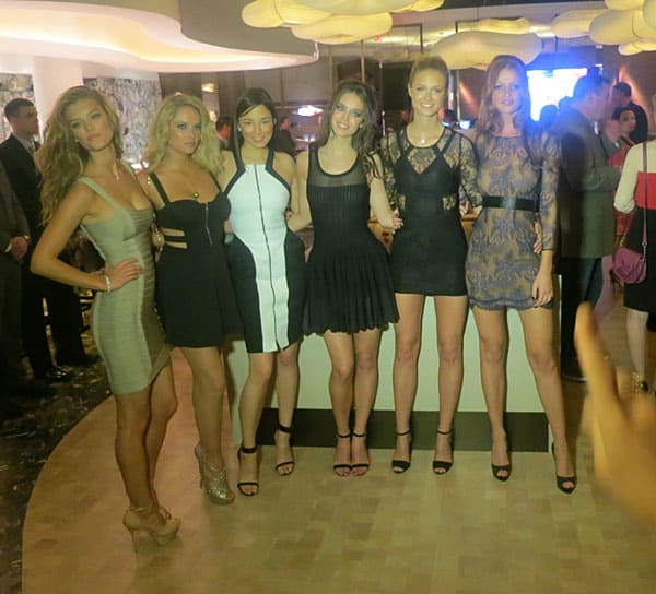 After a long day shooting videos, the models headed to Nobu in Caesar's Palace, where they posed for this group shot. A quick glance at their footwear makes me happy I'm not a girl.