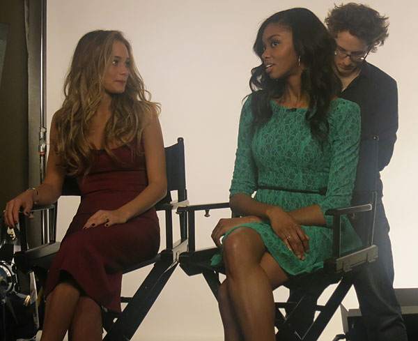 Hannah, Adaora (and Brandon, one of our video producers) chat before a shoot.