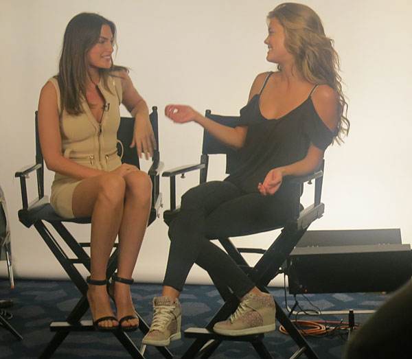 Alyssa Miller and Nina Agdal (who now prefer to be called "Alina") joke around before a video shoot.