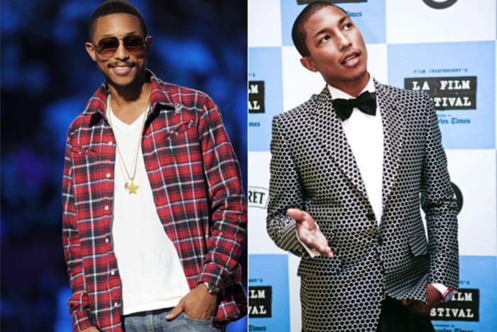 A.) I love how Pharrell brings "mmm-hmm" style to even a basic white t-shirt and demin look with the shades, plaid button-up, and neck chains. Just goes to show, sometimes simplicity really works!