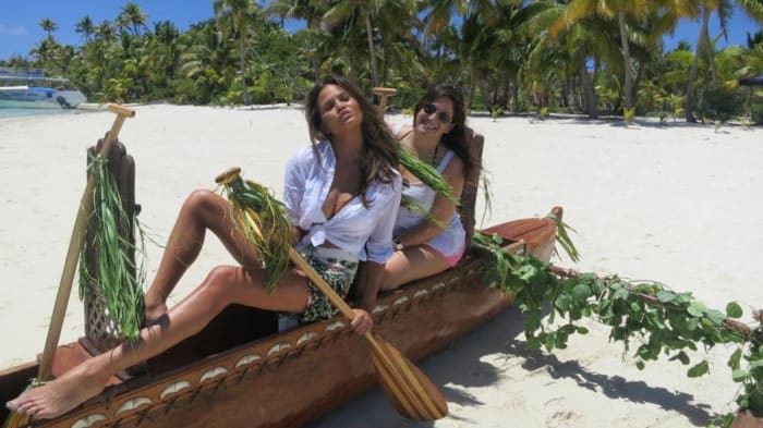 Chrissy Teigen and Hillary Drezner in the Cook Islands.