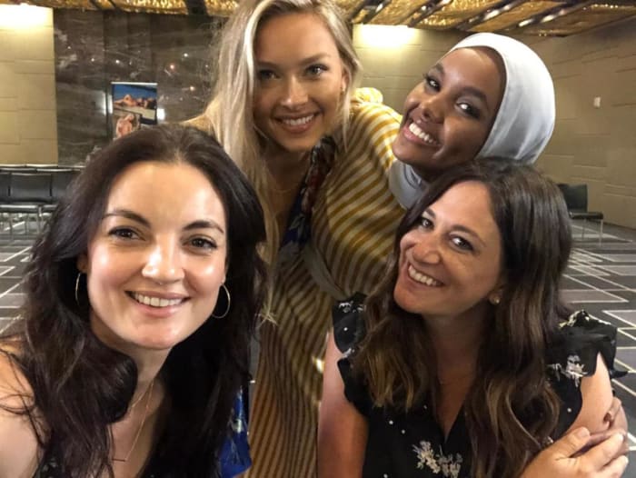 Clockwise: Camille Kostek, Halima Aden, Hillary Drezner and Janine Berey in Miami for the 2020 Swim Search.