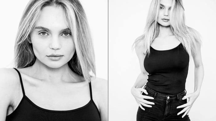Next up is blonde bombshell Elena Matei. This beauty was scouted in Romania five years ago and has been enjoying traveling around the world modeling ever since. When she's not working her angles in front of the camera, you can find Elena practicing her second passion—singing!